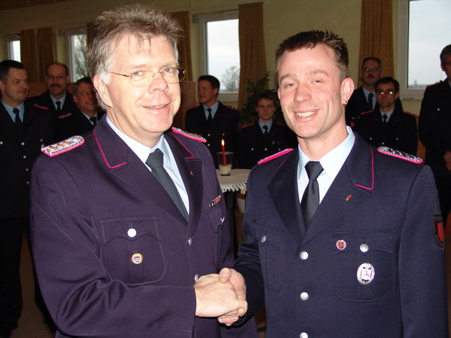 Abzeichen doch noch entgegen nehmen. Gemeindebrandmeister ehrte den Löschmeister mit dem