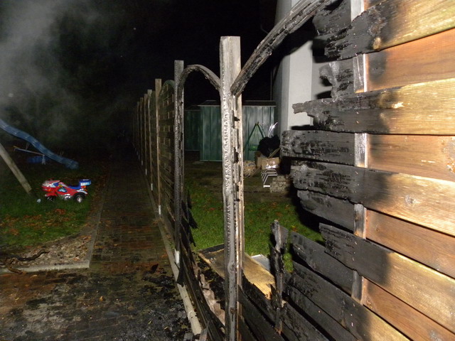 ein Schuppen und ein Palisadenzaun. Ein Trupp unter Atemschutz ging sofort gegen die