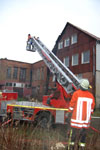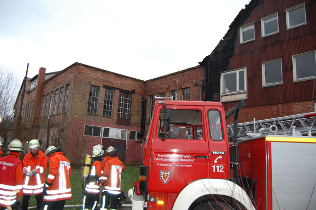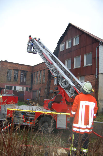 Ein Feuer an der alten Molkerei zwischen Ohndorf und Rehren führte zu einem Großeinsatz der Feuerwehr. 87 Einsatzkräfte mit 13 Fahrzeugen rückten aus. ![]() Da an der Einsatzstelle nur ein Hydrant zur Verfügung stand und ein Ausbreiten des Feuers nicht ausgeschlossen werden konnte, entschloss sich die Einsatzleitung zur Alarmierung des Schlauchwagens der Feuerwehr Lindhorst. Der in der Samtgemeinde Nenndorf stationierte Schlauchwagen befand sich in der Werkstatt. An der Rückseite des Gebäudes löschte die Feuerwehr Bad Nenndorf aus der Drehleiter heraus das Feuer an der Fassade. Zum Glück hatte es sich noch nicht in das Innere ausgebreitet. Mit der Wärmebildkamera kontrollierten die Feuerwehrleute von Innen und Außen, ob noch Glutnester vorhanden waren. Somit musste der Schlauchwagen nicht mehr eingesetzt werden. Im Einsatz waren sechs Feuerwehren mit 13 Fahrzeugen und 87 Einsatzkräften. Dazu stand ein Rettungswagen in Bereitstellung. Ebenfalls vor Ort war die Polizei. Text: Marco Thiele / Fotos: Schaumburger Nachrichten // 28.12.2009