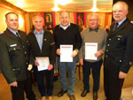 Dirk Mehring ist neuer Ortsbrandmeister in Riepen. Die Mitglieder der Feuerwehr wählten Mehring einstimmig zum Nachfolger von Friedhelm Möller, der ab März das Amt des Gemeindebrandmeisters in der Samtgemeinde Nenndorf übernimmt. Unterstützt wird Mehring von Frank Sonntag, der das Amt des Stellvertretenden Ortsbrandmeisters übernimmt. ![]() Auch der Tätigkeitsbericht der Jugendfeuerwehr stand ganz im Zeichen des Jubiläums. Jugendwart Bastian Breves schwärmte geradzu vom gelungenen Zeltlager im eigenen Ort. Das Wetter spielte zwar nicht immer mit, dennoch waren es einige schöne Tage, die allen Teilnehmern sicherlich in guter Erinnerung bleiben werden. Im Anschluss verteilte er an die fleißigsten Helfer und Organisatoren Wimpel, die sie an das Wochenende im Mai 2009 erinnern sollen. Die Jugendfeuerwehr war über das Jubiläum hinaus sehr aktiv. Die Jugendlichen besuchten Wettbewerbe, sammelten Weihnachtsbäume ein, lernten in Theorie und Praxis den Umgang mit den Gerätschaften und fuhren nach Evesen, um eine Woche lang am Stadtzeltlager Bückeburg teilzunehmen. Die Kinderfeuerwehr "Löschflitzer" trafen sich insgesamt 25 Mal. Während der regelmäßigen Treffen lernten die Kinder zwischen sechs und zehn Jahren vieles über die Feuerwehr. Aber auch das richtige Verhalten bei Bränden und Unfällen trainierten die Jungen und Mädchen zusammen mit der Leiterin Alexandra Niemann. Wettbewerbe, Bastelabende und Zeltlager rundeten das Jahr ab. Im November wählten die Führungskräfte der Samtgemeindefeuerwehr Friedhelm Möller zum neuen Gemeindebrandmeister. Das bedeutet, dass er das Amt des Ortsbrandmeisters der Freiwilligen Feuerwehr Riepen nicht mehr ausüben darf. Die Aktiven wählten daher den bisherigen Stellvertreter Dirk Mehring einstimmig zum neuen Ortsbrandmeister. Frank Sonntag, bisher Gruppenführer, übernimmt das Amt des stellvertretenden Ortsbrandmeisters. Für das neuen Jahr hat sich das Führungsduo vorgenommen, die Mitgliederwerbung zu forcieren. Der demografische Wandel macht sich auch in Riepen bemerkbar. Die Mitgliederzahlen gehen zurück und es wird immer schwieriger, die erforderliche Mindeststärke zu halten. Besonders spricht Mehring die Riepener Bürgerinnen an. Er präsentiert einen aktuellen Zeitungsartikel, in dem über Schaumburger Feuerwehrfrauen berichtet wird. Auf das ganze Land bezogen steigt der Anteil der Frauen in der Feuerwehr. Die Ortsfeuerwehr möchte natürlich an diesem erfreulichen Trend teilhaben und freut sich über jede Intereßentin. Aber natürlich sind auch alle Neuzugänge bei den "Löschflitzern", der Jugendfeuerwehr und der Einsatzabteilung herzlich willkommen. Zum Atemschutzgerätewart wählten die Mitglieder Michael Peters. Alexandra Niemann bleibt Leiterin der Kinderfeuerwehr. Als Nachfolger von Fritz Laeseke wurde Carmelo Vergato zum neuen Beisitzer gewählt. Ehrungen und Beföderungen durften nicht fehlen. Sven Niemann ist nun Oberfeuerwehrmann. Für 25-jährige fördernde Mitgliedschaft zeichneten Möller und Mehring Rudolf Badura, Günter Behrens und Eberhard Peters aus. Heiner Breves unterstützt die Ortsfeuerwehr seit nunmehr fünfzig Jahren. Text und Fotos: Marco Thiele // 09.01.2010