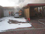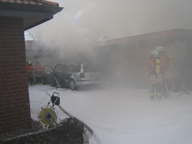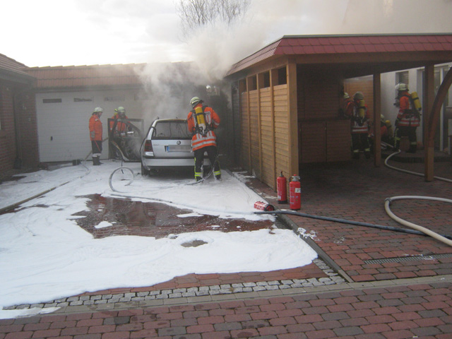 einem Feuer, dass das Auto zerstörte und den Carport des Nachbarn beschädigte.