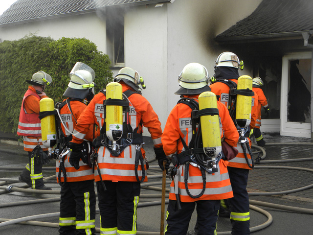 Aus bislang ungeklärter Ursache geriet am Sportplatz in Riehe ein Mehrfamilienhaus in Brand. Beim Eintreffen der Feuerwehr, deren Unterkunft nur wenige Meter entfernt liegt, schlugen die Flammen bereits aus dem Dach und den Fenstern. Das Feuer hatte sich rasend schnell verbreitet. Die ersten Einsatzkräfte versuchten zwar noch, das Feuer von innen zu bekämpfen, mussten das Vorhaben aber wegen der großen Hitze abbrechen. Die Feuerwehrleute bekämpften den Großbrand daher von außen und versuchten, ein Übergreifen der Flammen auf weitere Gebäudeteile und die Nachbarschaft zu verhindern.
