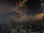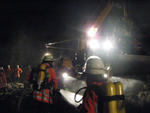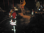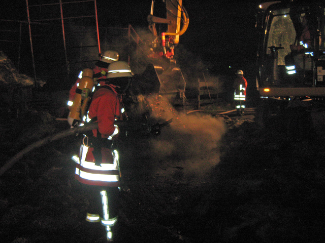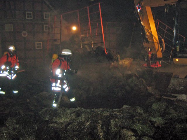 Bei einem Feuer in der Ohndorfer Schulstraße ging am späten Sonntagabend ein mit Heu beladender Anhänger in Flammen auf. Nachbarn bemerkten das Feuer und alarmierten die Hauseigentümer und die Feuerwehr. ![]() Sofort wurde eine Wasserversorgung aufgebaut. Mit zwei C-Rohren brachten die Feuerwehren Ohndorf, Horsten, Riepen und Haste das Feuer schnell unter Kontrolle. Die Löscharbeiten zogen sich dennoch mehrere Stunden hin, da das schwelende Heu vom Anhänger entladen und sorgfältig abgelöscht werden musste. Gute Dienste leistete hierbei ein Bagger, den ein Horster Feuerwehrmann unbürokratisch organisierte. Das Entladen und Ablöschen verursachte eine enorme Rauchentwicklung, sodass nur unter Atemschutz gearbeitet werden konnte. Die Feuerwehr aus Helsinghausen/Kreuzriehe rückte daher an, um für die Betreuung und Versorgung der eingesetzten Atemschutzgeräteträger zu sorgen. Insgesamt waren 62 Einsatzkräfte der Feuerwehren mit sieben Fahrzeugen vor Ort. Sie setzten drei C-Rohre und fünf Trupps unter Atemschutz ein. Wäre das Feuer später entdeckt worden und hätten die Anwohner nicht so schnell reagiert, wäre dieser Brand sicherlich nicht so glimpflich ausgegangen. Text: Marco Thiele / Fotos: Marco Thiele (3), Markus Brandt (5) // 06.06.2010