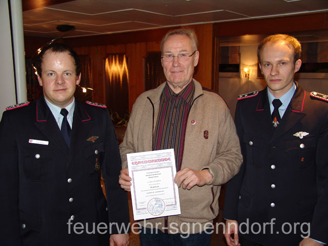 Viel Freizeit investierten die Wehrmitglieder in die theoretsiche und praktische Ausbildung, sowie in den Bau einer Fertiggarage. In dieser sollen künftig Ausrüstungsgegenstände gelagert werden. Zu sechs Einsätzen und zwei Einsatzübungen rückte die Feuerwehr aus. Besondere Erwähnung im Jahresbericht des stellvertretenden Ortsbrandmeisters Frank Sonntag fand eine Alarmübung in Riepen. Es wurde angenommen, dass ein Hubschrauber in die Überlandleitung zwischen Riepen und Ohndorf geriet und abstürzte. Zusammen mit den Feuerwehren aus Bad Nenndorf, Helsinghausen/Kreuzriehe, Horsten und Ohndorf, sowie dem DRK aus Bad Nenndorf ging man die Lage an. Es galt Menschen zu retten und eine Wasserversorgung von der Rodenberger Aue in Ohndorf aufzubauen. Während seines Berichts sprach Frank Sonntag auch die allgemeine Lage der Feuerwehren an. Geht man allein nach der Einwohnerzahl, könnten allein in Riepen 273 Bürgerinnen und Bürger zwischen 16 und 50 Jahren aktiv in der Feuerwehr tätig sein. Natürlich sei dieses nicht realistisch, dennoch würde sich die Feuerwehr über mehr Unterstützung freuen. Denn es sollte gehandelt werden, bevor es zu einem Schadensfall gekommen ist. Ohne eine solide Jugendarbeit könnte der Mitgliederbestand der Freiwilligen Feuerwehren nicht mehr gesichert werden. In Riepen wurde dieses schon früh erkannt. Mit Kinder- und Jugendfeuerwehr ist die Ortsfeuerwehr gut aufgestellt. Auch wenn es gerne ein paar Kinder und Jugendliche mehr sein dürften, die sich engagieren. "In der Jugendfeuerwehr profitieren die Jungen von der sozialen Kompetenz der Älteren", brachte es Christine Cronjaeger, zweite stellvertretende Bürgermeisterin der Stadt Bad Nenndorf, auf den Punkt. Dass die Jugendabteilungen sehr aktiv waren, zeigten die Jahresberichte der Leiter. Jugendfeuerwehrwart Bastian Breves berichtete von einem Zuwachs der Mitgliederzahlen. Den fünf Austritten standen neun Zugänge gegenüber, sodass nun zwölf Jungen und Mädchen in Riepen in der Jugendfeuerwehr aktiv sind. Zu 47 Terminen trafen sich die angehenden Brandschützer. In Summe waren das 110 Stunden Dienst, 25 mehr als in 2009. Das Highlight des Jahres war ein gutes Abschneiden beim Kreiswettbewerb. Die Riepener Gruppe belegt den 19. von 87 Plätzen. Laut Breves das beste Ergebnis bei einem Kreiswettbewerb in den vergangenen 20 Jahren. Für das neue Jahr stehen schon wieder einige Termine fest. Die Prüfungen zur Jugendflamme, zur Leistungsspange und das Kreiszeltlager in Bückeburg sind nur einige der Höhepunkte. Die sieben Mitglieder der Kinderfeuerwehr trafen sich 22 Mal. Dabei behandelten die Betreuer um Leiterin Alexandra Niemann Themen wie Verkehrserziehung, Unfallverhütung oder Fahrzeugkunde. Die Kinder gingen aber auch Eis essen, bowlen und bastelten ein eigenes Feuerwehr-Memory. Für 2011 ist angedacht, einen Schnuppernachmittag durchzuführen. Ziel soll sein, mehr Mitglieder zu gewinnen. Alle Riepener Kinder zwischen sechs und zehn Jahren sollen dann eingeladen werden. Durch die Veränderung an der Spitze der Wehr, galt es verschiedene Positionen neu zu besetzen. Zum neuen Ortsbrandmeister wählten die Aktiven einstimmig Michael Peters. Der 30-jährige war bisher als Atemschutzbeauftragter und Sicherheitsbeauftragter aktiv. Neuer Atemschutzbeauftragter ist nun Martin Wiehenkel. Zum Sicherheitsbeauftragten wurde Dirk Müller gewählt. In Abwesenheit votierten die Feuerwehrmitglieder für Sven Möller als Gerätewart. Der bisherige Amtsinhaber Reinhard Gehrke stand nach zwölf Jahren im Amt nicht mehr für eine fünfte Periode zur Verfügung. Beföderungen und Ehrungen durften ebenfalls nicht fehlen. Frank Sonntag beförderte Dirk Müller zum Feuerwehrmann und René Kursch zum Oberfeuerwehrmann. Durch den Gemeindebrandmeister Friedhelm Möller wurden Michael Peters zum Löschmeister und Bastian Breves zum Oberlöschmeister befördert. Gemeindebrandmeister Friedhelm Möller, der auch Mitglied der Feuerwehr Riepen ist, erhielt durch den Abschnittsleiter Uwe Blume eine hohe Auszeichnung. Für 40-jährige aktive Mitgliedschaft wurde der mit dem Ehrenzeichen des Landes Niedersachsen geehrt. Horst Stüber, der die Wehr seit 50 Jahren als förderndes Mitglied unterstützt, erhielt durch Frank Sonntag die Ehrennadel der Riepener Feuerwehr. Gleichzeitig wählte ihn die Versammlung einstimmig zum Beisitzer. Ebenfalls geehrt wurden Dirk Mehring und Reinhard Gehrke. Für ihre langjährige Arbeit im Kommando erhielten sie Geschenke als Dank und Anerkennung. Samtgemeindebürgermeister Bernd Reese zeigte sich in seinem Grußwort erfreut über gelungenen Stabwechsel in der Führung der Wehr. Auch während der kommisarischen Leitung habe er immer ein "gutes Gefühl" gehabt und lobte die gute Zusammenarbeit. Alle zehn Feuerwehren der Samtgemeinde seien weiterhin erforderlich. Diese Erkenntnis, und dass man für Personal und eine gute sachliche Ausstattung sorgen müsse, setze sich auch immer mehr im Feuerwehrausschuss durch. Das Starkregenereignis im vergangenen August zeigte, obwohl die Samtgemeinde nur am Rande betroffen war, dass ohne die einzelnen Ortsfeuerwehren eine "bittere Situation" entstanden wäre. Text und Fotos: Marco Thiele // 15.01.2011
