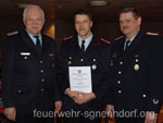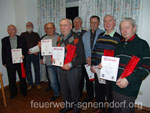 Bei den Hilfeleistungen galt es, an einer Lokomotive nach einem Personenunfall einen Schaden zu beheben, anschließend wurde die Lok gereinigt. Die Feuerwehr pumpte nach einem Starkregen im August diverse Keller aus und rückte mitten in der Nacht aus, um durch auslaufendes Öl Schaden von der Umwelt abzuwenden. Bei zwei im Eis auf dem Mittellandkanal eingebrochenen Wildschweinen konnte die Feuerwehr nicht helfen. Nach Absprache mit der Wasserschutzpolizei erlöste ein Jäger die Tiere von ihren Qualen im eiskalten Wasser. Dass dieses so gut gelang, war nicht zuletzt ein Verdienst der Ausbildung. Gruppenführer Carsten Büttner arbeitete dazu verschiedene Szenarien aus, die vor allem die Atemschutzgeräteträger fordern sollten. Unter anderem trainierten die Aktiven auf einem Binnenschiff und absolvierten eine Heißausbildung in einem speziellen Übungscontainer in Stadthagen. Zusätzlich zu den normalen Übungsdiensten standen die Wettbewerbe auf dem Programm. Die wöchentlichen Übungseinheiten haben sich gelohnt. Auf Gemeindeebene holte die Haster Gruppe den zweiten Platz. Nicht einmal eine Sekunde fehlte zum Sieg. Beim Kreiswettbewerb in Bückeburg wurde ebenfalls ein zweiter Platz und somit die Qualifikation für den Regionalentscheid erreicht. Mit Platz sieben sicherte sich die Gruppe das Ticket für die Landesmeisterschaften, die in 2011 in Ostfriesland stattfinden. Ein riesiger Erfolg. Noch nie hatten sich die Haster in ihrer nahezu 100-jährigen Geschichte für den Entscheid qualifiziert. Entsprechend hoch ist auch die Motivation. Es wird sicherlich viel geübt, um auch diesen Wettbewerb zu einem Erfolg werden zu lassen. Die Jugendfeuerwehr sichert den Bestand der Freiwilligen Feuerwehr. Und das bereits seit 20 Jahren. Jugendwartin Laura Glensk erinnerte sich dann auch gerne an die Jubiläumsfeier, die zusammen mit befreundeten Jugendfeuerwehren begangen wurde. Gleichzeitig leitete die Feuerwehr mit der Gründung der Kinderfeuerwehr eine neue Ära in der Jugendarbeit ein. Die 13 angehenden Feuerwehrleute kamen mehr als 60 Mal zu gemeinsamen Aktivitäten zusammen. Mal ging es bei den Treffen um die Feuerwehrtechnik, mal dienten die Treffen auch der Geselligkeit oder dem Einsatz für den Ort Haste. Dabei waren die Jugendlichen sehr kreativ. Sie bemalten eigene T-Shirts oder bastelten für den Weihnachtsbasar im Feuerwehrhaus. Die jüngsten Mitglieder der Feuerwehr Haste sind die "Feuerschlümpfe". Zwanzig Jungen und Mädchen zwischen sechs und zehn Jahren treffen sich regelmäßig, um unter der Leitung von Jennifer Wüstenfeld und Lisa Wegener gemeinsam zu spielen oder Interessantes rund um die Feuerwehr zu lernen. Verkehrserziehung, Erste Hilfe, ein Umweltquiz oder das richtige Absetzen eines Notrufs standen auf dem Plan für 2010. Für 2011 stehen bereits erste Termine fest. Die Kinder nehmen am Winterwettbewerb der Gemeindejugendfeuerwehr teil und planen eine Kodieraktion für Fahrräder. Anhand der Jahresberichte stellte Bernd Reese fest, dass die Aktiven "mehr riskieren als ein Samtgemeindebürgermeister". Daher wünschte er ihnen auch immer eine gesunde Rückkehr von den Einsätzen. Der Versammlung berichtete er von aktuellen Themen des Rates und den Haushaltsberatungen. Aus Sicht der Feuerwehren hat vor allen Dingen eine Bereisung aller Feuerwehrhäuser dazu beigetragen, den Feuerwehrausschuss von der Notwendigkeit bestimmter Investitionen zu überzeugen. Der Haster Bürgermeister Sigmar Sandmann fügte dem Motto der Feuerwehren "Retten, Löschen, Bergen, Schützen" noch den Begriff "Helfen" hinzu. Damit meinte er nicht die kommunale Aufgabe der Hilfeleistung. Sein Helfen bezog sich auf die Unterstützung der Feuerwehr bei Aktionen und Veranstaltungen im Ort. Besonders wertvoll erwies sich diese Unterstützung bei der Ankunft des Fürsten am Haster Bahnhof. Die Feuerwehr sorgte dafür, dass der Verkehr reibungslos lief und Fahrgäste auch zur verlegten Bushaltestelle fanden. Für langjährige fördernde Mitgliedschaft ehrte Ortsbrandmeister Klaus-Peter Wegener diverse Haster Bürger. 25 Jahre unterstützen Dieter Sawierski und Friedrich Heisterberg die Wehr. Seit 40 Jahren sind bereits Helmut Seegers, Wilhelm Wegener, Dieter Reinecke, Wilhelm Hages, Harald Krabbenhöft und Burkhard Brandes dabei. Über Dank und Anerkennung für 50 Jahre freute sich Willi Gümmer. Ebenfalls über eine Ehrung freute sich Werner Harder. Nach 22 Jahren Tätigkeit als Kassierer tritt er in den Ruhestand und übergibt sein Amt in die Hände von Rüdiger Wehrmann. Für seine geleistete Arbeit überreichte ihm Ortsbrandmeister Wegener ein Präsent. Daniel Vopel freut sich über die Beförderung zum Feuerwehrmann und neue Schulterstücke. In den nächsten Dienstgrad rückten auch Laura Glensk, Michael Stanke und Ulrike Stanke auf. Sie sind nun Oberfeuerwehrleute. Der Gemeindebrandmeister Friedhelm Möller beförderte Gruppenführer Carsten Büttner zum Hauptlöschmeister und rückte im Anschluss ebenfalls einen Dienstgrad höher. Der Samtgemeindebürgermeister beförderte ihn zum Hauptbrandmeister. Text und Fotos: Marco Thiele // 26.02.2011