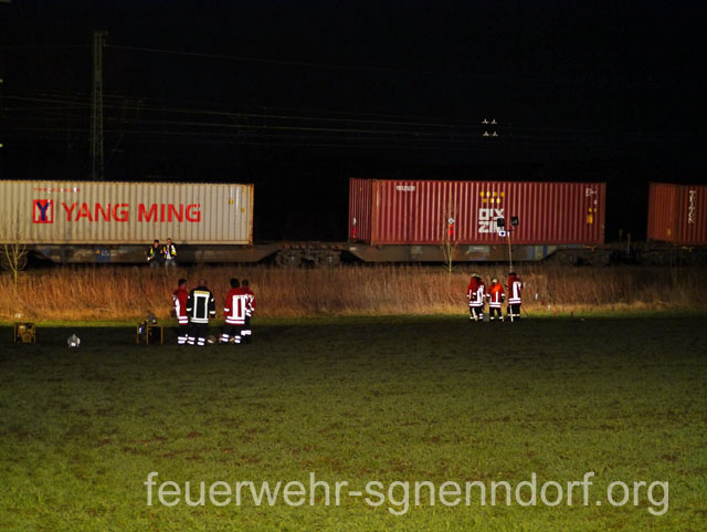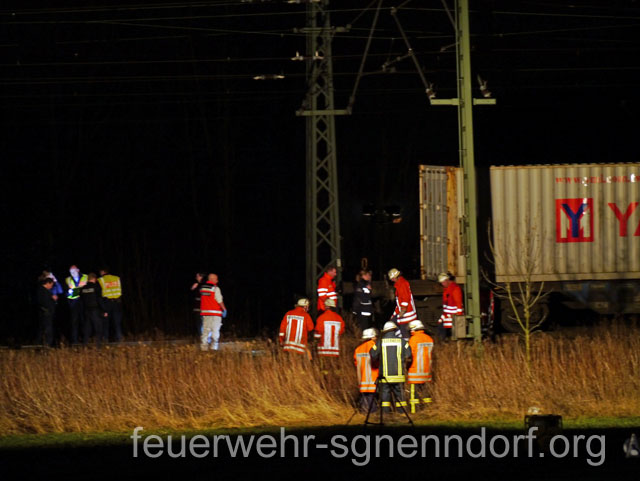 Ein Güterzug erfasste etwa 100 Meter hinter dem Bahnübergang Waldfrieden in Richtung Minden eine Person. Der Lokführer leitete sofort eine Notbremsung ein und kam mit seinem Zug nach einigen Hundert Metern zum Stehen. Die alarmierten Einsatzkräfte entdeckten die Person im Gleis, konnten ihr jedoch nicht mehr helfen. Die Arbeit der Feuerwehr beschränkte sich daher zunächst auf das Ausleuchten der Unfallstelle. Da der Zug selber ebenfalls einige Hundert Meter lang war und sich Unfallspuren auf die gesamte Länge verteilten, forderte der Einsatzleiter die Wehren aus Helsinghausen/Kreuzriehe und Riepen zur Unterstützung an. Diese halfen bei der Beleuchtung des Zuges. Zusätzlich unterstützten die Feuerwehrleute die Polizei bei der Bergung des Opfers.