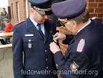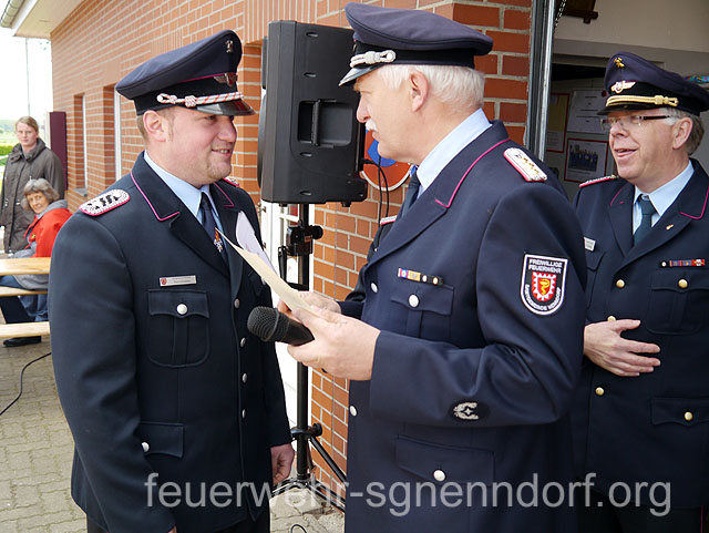 Im Rahmen der Siegerehrung wurden zwei Feuerwehrkameraden geehrt. Jens Wehrhahn aus der Feuerwehr Hohnhorst ist seit 25 Jahren aktives Mitglied. Uwe Blume, der Leiter des Brandschutzabschnitts Nord, ehrte ihn hierfür mit dem Ehrenzeichen des Landes Niedersachsen. Gemeindebrandmeister Friedhelm Möller beförderte im Anschluss den stellvertretenden Ortsbrandmeister der Feuerwehr Rehren, Timo Lattwesen, zum Hauptlöschmeister. Text und Fotos: Marco Thiele // 13.05.2012