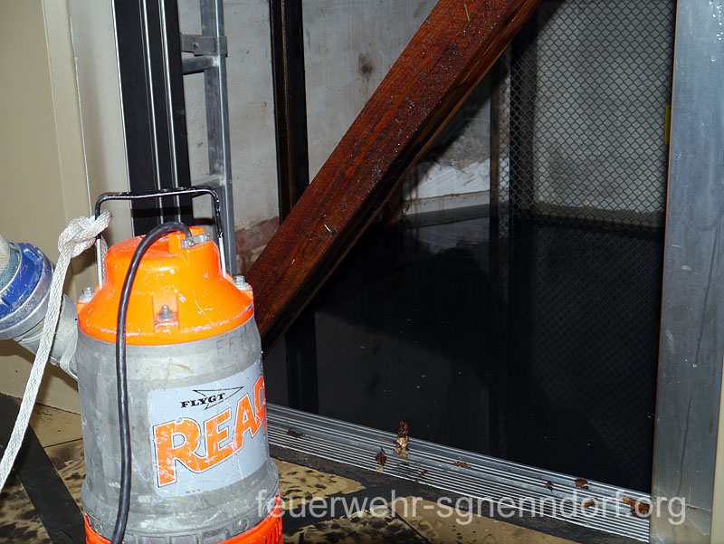 Die Einsatzkräfte aus der Kurstadt rückten zu acht Einsatzstellen aus. Nicht immer konnten sie jedoch tätig werden, da nur wenige Zentimeter Wasser in den Räumen standen. Damit die Pumpen das Wasser ansaugen können, ist ein gewisser Wasserstand erforderlich. Die Betroffenen behalfen sich jedoch mit Eimer und Lappen. Im Wincklerbad drangen Wasser und Schmutz durch eine Tür im Souterrain ein. Das Wasser verteilte sich im Foyer und lief schließlich zum tiefsten Punkt, dem Fahrstuhlschacht. Mit einer Lenzpumpe entfernte die Feuerwehr die schmutzige Brühe, die etwa eineinhalb Meter hoch im Schacht stand. Zwei Pflegeeinrichtungen riefen ebenfalls die Feuerwehr zur Hilfe. In einem Fall pumpte die Feuerwehr das Wasser ab, bevor es in das Gebäude eindringen und größeren Schaden anrichten konnte. In einem anderen Fall standen einige Zentimeter Wasser im Kellergeschoss mit einer Station für Demenzkranke. Für die Patienten bestand keine Gefahr, sodass die Feuerwehr wieder abrücken konnte. Aus Bad Nenndorf waren mehr als 30 ehrenamtliche Einsatzkräfte unterwegs, um die Folgen des Starkregens zu beseitigen. Die Feuerwehr Horsten war mit neun Feuerwehrleuten im Einsatz. Text und Fotos: Marco Thiele // 07.07.2012