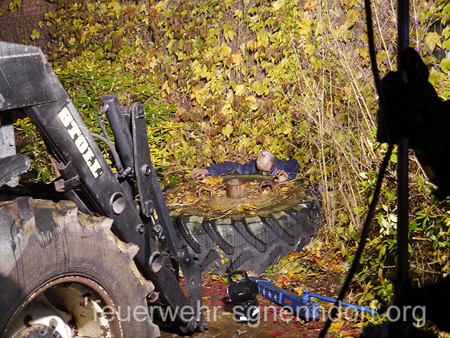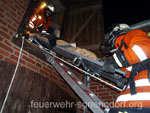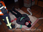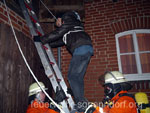 Beim Aufbau des Ohndorfer Weihnachtsmarktes kam es zu einem Unglück. Durch falsche Handhabung explodierte eine Gasflasche. Ein Feuer brach aus und mehrere Menschen waren verletzt von Rauch und Flammen eingeschlossen. Der zweite Zug der Kreisfeuerwehrbereitschaft Nord befand sich zufällig in der Nähe und wurde zur Einsatzstelle beordert. ![]() Bei der Erkundung der Einsatzstelle stellten Zugführer Kim Röhrbein und sein Stellvertreter Carsten Riechert fest, dass vier Personen auf Dachböden eingeschlossen waren. Auf der dunklen Gebäuderückseite war zusätzlich eine Person unter einem mehrere Hundert Kilogramm schweren Weihnachtsbaumständer eingeklemmt. Die Feuerwehr Meerbeck-Niedernwöhren erhielt den Auftrag, die eingeklemmte Person zu befreien. Die Feuerwehr aus Ohndorf baute eine Schlauchleitung auf, damit zunächst das entstandene Feuer gelöscht werden konnte. Aus den Feuerwehren Waltringhausen und Riepen gingen anschließend Trupps unter Atemschutz in das Gebäude vor, um die eingeschlossenen Verletzten - dargestellt durch Jugendliche der Jugendfeuerwehr Ohndorf - zu befreien. Beide dunklen Dachböden waren durch Nebelmaschinen zusätzlich verqualmt. Die Trupps mussten also zunächst die Personen lokalisieren. Dieses war recht schnell erledigt. Die Rettung der zum Teil bewusstlosen "Opfer" gestaltete sich ob des schmalen und steilen Aufgangs zum Schulboden schwierig. Auch die Rettung von zwei weiteren Personen von einem Dachboden über einem Lager war nicht einfach. Sie mussten über eine Leiter aus ihrer misslichen Lage befreit werden. Einer konnte noch selbstständig über die Leiter absteigen. Ein Schwerverletzter musste jedoch mit einer Trage abgelassen werden. Dank vieler zupackender Hände erreichte er sicher den Erdboden. Der eingklemmte Helfer auf der Rückseite des Gebäudes war schnell befreit. Mit einem hydraulischen Spreizer wurde der Ständer angehoben und der Verletzte hervorgezogen. Während des gesamten Übungsverlaufs unterstütze die Feuerwehr Probsthagen die Einsatzleitung und hielt Kontakt zur Feuerwehr Einsatzleitstelle in Stadthagen. Im Anschluss an die Übung - die auch vom Nenndorfer Gemeindebrandmeister Friedhelm Möller und den beiden Bereitschaftsführern Joachim Muth und Roland Kramer beobachtet wurde - stärkten sich die etwa 40 Einsatzkräfte und Helfer an einer warmen Gulaschsuppe und ließen den Ablauf noch einmal Revue passieren. Text und Fotos: Marco Thiele // 16.11.2012