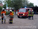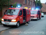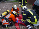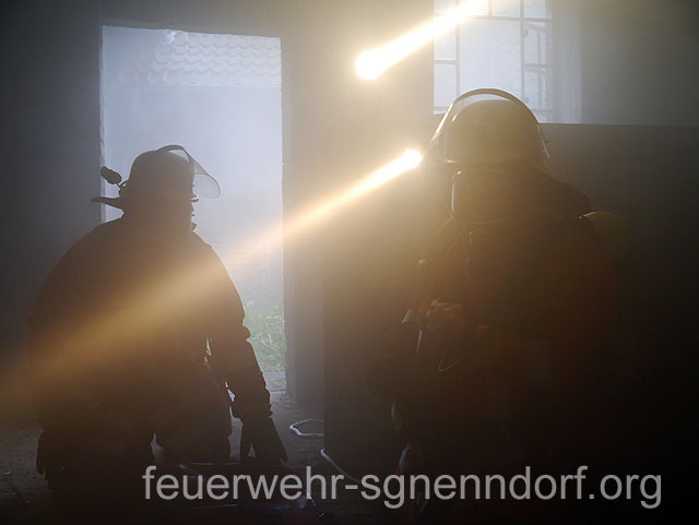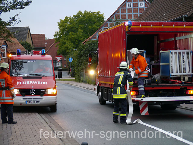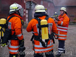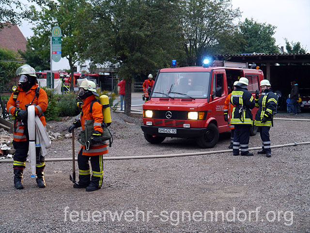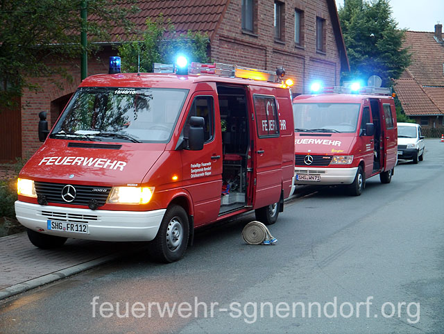 Bei Arbeiten an einem Pkw geriet in Horsten eine Scheune in Brand. Löschversuche des Eigentümers blieben ohne Erfolg und das Feuer weitete sich auf andere Teile des Gebäudes aus. Fünf Personen waren von den Flammen eingeschlossen und Nachbargebäude in Gefahr. So lautete das Übungsszenario, dem sich vier Feuerwehren der Samtgemeinde Nenndorf stellten. Zu dieser nicht angekündigten Alarmübung rückten die Feuerwehren Horsten, Ohndorf und Riepen - sie bilden den Löschzug West - sowie die Feuerwehr Helsinghausen/Kreuzriehe mit dem Geräteanhänger Atemschutz aus. Übungsobjekt war ein ehemaliges landwirtschaftlich genutztes Gebäude, das wenige Tage nach der Übung abgerissen werden soll. Somit bot sich für die Feuerwehren eine einmalige Gelegenheit für eine Übung.Christian Oltrogge, Ortsbrandmeister in Horsten, hatte die Übung ausgearbeitet. Die zuerst eintreffende Wehr aus Horsten begann sogleich mit dem Aufbau der Wasserversorgung. So konnte die folgende Feuerwehr aus Ohndorf umgehend einen Trupp unter Atemschutz zur Suche nach den vermissten Personen in das Gebäude schicken. Im verqualmten Obergeschoss entdeckten die Feuerwehrleute zwei der "Opfer" und brachten sie ins Freie. Parallel dazu bauten weitere Einsatzkräfte eine sogenannte Riegelstellung auf. Damit schützten sie eine benachbarte Lackiererei vor dem Feuer. Atemschutztrupps aus Riepen und Helsinghausen/Kreuzriehe durchsuchten derweil weitere Gebäudeteile. Dort fanden sie drei leblose Personen, dargestellt durch ca. 80 kg schwere Dummies, die teilweise unter Gegenständen lagen und zunächst befreit werden mussten. Nach etwa 45 Minuten endete die Übung, an der rund 40 Einsatzkräfte mit fünf Fahrzeugen teilnahmen. Ein erstes Fazit fiel durchaus positiv aus. Außer einiger Kleinigkeiten, die optimiert werden können, sei die Übung gut abgelaufen. Text und Fotos: Marco Thiele // 02.09.2013