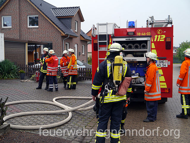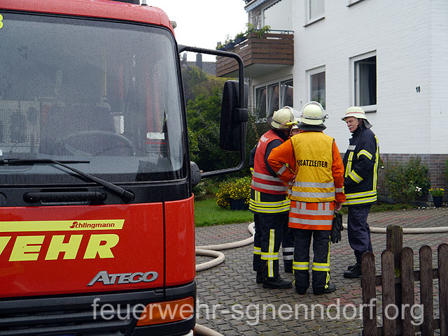 Die Feuerwehren aus Haste, Hohnhorst und Bad Nenndorf rückten am Sonntagmorgen zu einem Feuer in einem Mehrfamilienhaus aus. In einem Badezimmer brannten unter starker Rauchentwicklung verschiedene Einrichtungsgegenstände. Die Bewohner hatten das Gebäude bereits verlassen. Ein Trupp unter Atemschutz ging sofort nach dem Eintreffen an der Einsatzstelle in das Gebäude vor. Das Feuer war schon größtenteils erloschen. Mit einer Kübelspritze löschten die Einsatzkräfte letzte Glutnester ab und beförderten die Überreste ins Freie.Mit einem Lüfter befreiten weitere Feuerwehrleute den Rest des Gebäudes vom entstandenen Qualm. Durch offene Türen hatte er sich in andere Räume verteilt. Da auch Kunststoffe verbrannten, setzte sich an Wänden und Decken eine Rußschicht ab. Menschen kamen nicht zu Schaden. Zwei Katzen, die sich in einer abgeschlossenen Wohnung befanden, konnten dort verbleiben. Da diverse Einsatzkräfte der Feuerwehr Haste beim Deutschen Jugendfeuerwehrtag in Stadthagen unterstützten, wurde zusätzlich die Feuerwehr Bad Nenndorf alarmiert. Sie wurde dann allerdings doch nicht benötigt und konnte wieder umkehren. Im Einsatz waren etwa 30 Einsatzkräfte der Feuerwehr. Ein Streifenwagen der Polizei, sowie ein Rettungswagen des Deutschen Roten Kreuzes waren ebenfalls vor Ort. Den entstandenen Schaden schätzt die Polizei auf 20.000 bis 30.000 Euro. Text und Fotos: Marco Thiele // 08.09.2013