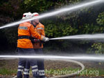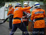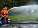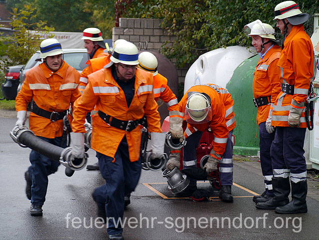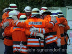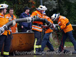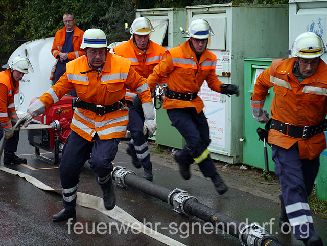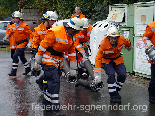 Die Feuerwehr Haste richtete wieder ihre traditionellen "Eimerspiele" aus. Neun Gruppen aus der Region Hannover und der Samtgemeinde Nenndorf nahmen an den Wettbewerben nach alten Bestimmungen teil. Hierbei kommt es auf Geschwindigkeit und fehlerfreies Arbeiten an. Die Gruppen erhalten die Aufgabe, so schnell und so fehlerfrei wie möglich einen Löschangriff mit drei Rohren aufzubauen. Zunächst wird die Saugleitung aufgebaut, um Wasser fördern zu können. Nach der Verkehrssicherung mit Schlauchbrücken und Warndreiecken ist der eigentliche Löschangriff in vollem Gange. Drei Rohre werden vorgenommen, um die "Eimer" mit einem gezielten Wasserstrahl von den Ständern zu befördern. Nachdem alle Ziele auf dem Boden aufgeschlagen sind, endet die Zeitnahme.Im Anschluss an die Übung teilen die Wertungsrichter dem Gruppenführer der gestarteten Feuerwehr die Fehlerpunkte mit. Diese werden in der Endabrechnung der benötigten Zeit aufgeschlagen. Nachdem alle Gruppen gestartet waren, fand im Feuerwehrhaus Haste die Siegerehrung statt. In diesem Jahr entschied die Feuerwehr Ohndorf mit 96,6 Punkten den prestigeträchtigen Wettbewerb für sich. Auf den weiteren Plätzen folgten die Gruppen Rehren II (102,6 Punkte), Hohnhorst (111,8), Riehe (112,1), Wettkampfgericht (113,0), Haste (113,5), Horsten (115,4), Rehren I (125,3) und Kolenfeld (146,4). Neben dem Wettbewerb steht auch die Kameradschaft im Vordergrund. Jüngere und ältere Feuerwehrmitglieder nehmen gemeinsam in den Gruppen teil. Nach die Siegerehrung wird dann noch lange in gemütlicher Runde gefachsimpelt, um im nächsten Jahr vielleicht einige Sekunden schneller zu sein. Text und Fotos: Marco Thiele // 05.10.2013