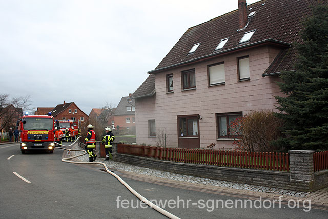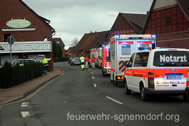 In einem Mehrfamilienhaus in Riehe kam es am vierten Advent zu einem Feuer in der Küche. Aus bislang ungeklärter Ursache gerieten Einrichtungsgegenstände in Brand. Schnell breitete sich Rauch durch offene Türen im Gebäude aus. Die zuerst eintreffende Feuerwehr aus Riehe ging mit einem Trupp unter Atemschutz in das Gebäude vor. Der Qualm in der Küche war so dicht, dass die Feuerwehrleute die Brandstelle zunächst nicht lokalisieren konnten. Erst nachdem ein Fenster geöffnet war, zog der Rauch ab. Mit einigen gezielten Wasserstößen wurden eine Dunstabzugshaube und einige brennende Einrichtungsgegenstände gelöscht.Zwei große Lüfter beförderten mittlerweile den Rauch aus dem Gebäude. Mit der Wärmebildkamera aus Bad Nenndorf kontrollierten die Einsatzkräfte die Küche auf mögliche Brandnester, konnten aber keine mehr entdecken. Nach etwa einer Stunde war der Einsatz beendet. Die Feuerwehren Riehe, Waltringhausen, Helsinghausen/Kreuzriehe und Bad Nenndorf waren mit acht Fahrzeugen und mehr als 60 Einsatzkräften vor Ort. Da insgesamt neun Hausbewohner den Rauch eingeatmet hatten, forderte der Rettungsdienst weitere Einsatzkräfte an. Insgesamt waren fünf Rettungswagen und zwei Notärzte aus Schaumburg und der Region Hannover vor Ort. Die Örtliche Einsatzleitung des Landkreises Schaumburg koordinierte die Arbeiten des Rettungsdienstes. Die Brandursache ist noch unbekannt. Beamte der Kriminalpolizei haben die Ermittlungen aufgenommen. Text: Marco Thiele / Fotos: Sven Geist, Marco Thiele // 22.12.2013