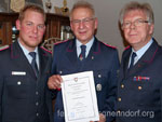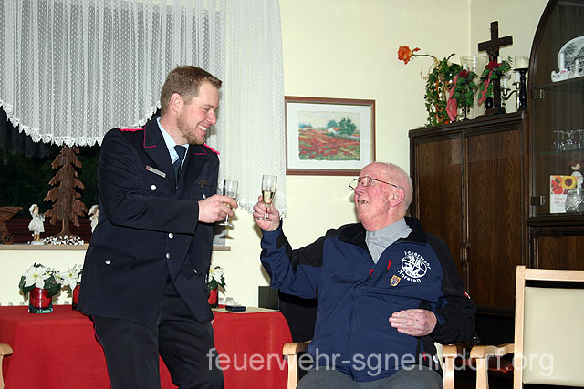 Die Jugendfeuerwehr Horsten erlebt eine Renaissance. Nachdem die Jugendarbeit viele Jahre lang ruhte, treffen sich seit 2013 wieder regelmäßig zehn Jugendliche unter der Leitung vom Jugendfeuerwehrwart Frank Wiegel zu gemeinsamen Diensten. In den ersten Monaten lernten die Jungen und Mädchen zunächst die technischen Geräte in Horsten intensiv kennen und übten Grundlagen, wie etwas das Aus- und Aufrollen von Schläuchen. Am Winterwettbewerb der Nenndorfer Jugendfeuerwehren nehmen die Jugendlichen bereits mit großer Freude teil. Auch für die feuerwehrtechnischen Wettbewerbe will man intensiv üben. "Möllenbeck muss sich warm anziehen", scherzte Wiegel und hatte die Lacher auf seiner Seite. Sicherlich ist es für die Wiedereinsteiger noch ein weiter Weg bis zur Deutschen Meisterschaft.Probleme bereitet jedoch der Transport der Jugendlichen zu den jeweiligen Veranstaltungen. Das Horster Feuerwehrfahrzeug ist hierfür nicht ausgelegt. Daher planen die Horster Feuerwehrleute derzeit die Anschaffung eines Transporters für die Jugendfeuerwehr. Erste Gespräche mit Sponsoren haben bereits stattgefunden. Ortsbrandmeister Christian Oltrogge und sein Stellvertreter Kersten Dehne berichteten von den Aktivitäten der Einsatzabteilung. Die 21 aktiven Feuerwehrleute rückten im vergangenen Jahr zu zwei Brandeinsätzen und zwei Hilfeleistungen aus. Besonders in Erinnerung bleiben wir den Aktiven sicherlich der Katastropheneinsatz in Magdeburg. Sechs Tage waren zwei Kameraden mit dem Gerätewagen Logistik für die Kreisfeuerwehrbereitschaft Nord im Einsatz. Zu Ausbildungszwecken nahmen die ehrenamtlichen Brandschützer an Einsatzübungen der Kreisfeuerwehrbereitschaft teil. Eine weitere Übung fand in Horsten statt. Zusammen mit den Wehren aus Helsinghausen/Kreuzriehe, Riepen und Ohndorf wurde ein angenommener Scheunenbrand bekämpft. Mehrere Menschen mussten aus dem Gebäude gerettet werden. Umbau- und Renovierungsarbeiten fanden rund um das Feuerwehrhaus ebenfalls wieder statt. So wurde ein Schuppen zur Lagerung von Gerätschaften angebaut, eine Damentoilette eingebaut und ein ehemaliger Kameradschaftsraum zum Umkleideraum umgebaut. Für 2014 ist eine verstärkte Zusammenarbeit mit den Feuerwehren aus Riepen und Ohndorf geplant. Da die drei Wehren seit Beginn des Jahres den Löschzug West bilden und bei Einsätzen gemeinsam ausrücken, ist eine gemeinsame Ausbildung unerlässlich. Samtgemeindebürgermeister Bernd Reese bezeichnete die Feuerwehren in seinem Grußwort als erste Bürgerinitiative. Angesichts immer häufiger auftretender Starkregenereignisse seien sie für die Bürger wichtig. Er dankte für das geleistete Engagement bei Ausbildung und Einsatz und überbrachte die besten Wünsche für 2014 aus Rat und Verwaltung. Vor der Versammlung wurde der Ehrenbrandmeister Willi Nolting vom Leiter des Brandschutzabschnitts Nord, Uwe Blume, mit dem Ehrenzeichen des Landesfeuerwehrverbandes für 70-jährige Mitgliedschaft in der Feuerwehr ausgezeichnet. Der 86-jährige Nolting war viele Jahre Ortsbrandmeister in Horsten. Auf seine Initiative wurde die Jugendfeuerwehr gegründet. Nolting lebt heute in Bad Nenndorf in einem Pflegeheim und konnte aus gesundheitlichen Gründen leider nicht an der Versammlung teilnehmen. Zusammen mit eine Abordnung Horster Feuerwehrleute und Samtgemeindebürgermeister Bernd Reese überreichte daher Uwe Blume in einer kleinen Feierstunde im Heim die Ehrenurkunde und Abzeichen. Willi Nolting ließ es sich aber nicht nehmen, auf die hohe und seltene Ehrung zusammen mit seinen Gästen anzustoßen. Als Ausbilder für das Deutsche Rote Kreuz war Nolting ebenfalls aktiv. Viele Feuerwehrleute absolvierten bei ihm einen Lehrgang in Erster Hilfe. Der Jugendfeuerwehr überreichte er bei der Gründung eine Tasche für Verbandsmaterial. Diese Tasche überreichte Kersten Dehne an den neuen Jugendfeuerwehrwart Frank Wiegel. Dieser möchte sie in Ehren halten und bei Aktivitäten der Jugendfeuerwehr natürlich mitführen. Für 25-jährige aktive Mitgliedschaft zeichnete Uwe Blume Thomas Reese mit dem Ehrenzeichen des Landes Niedersachsen aus. Text: Marco Thiele / Fotos: Frank Wiegel, Marco Thiele // 10.01.2014