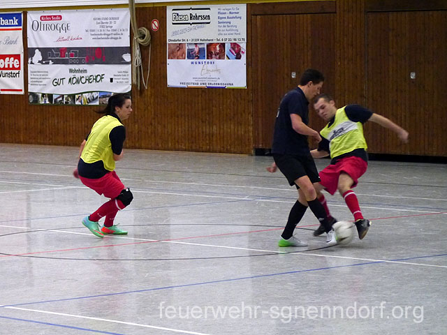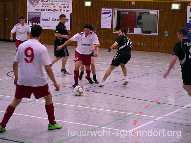 Die Freiwillige Feuerwehr Haste feiert in diesem Jahr ihr 100-jähriges Bestehen. Aus diesem Anlass finden in den nächsten Monaten verschiedenste Veranstaltungen statt. Den Auftakt machte ein Hallenfußballturnier, zu dem befreundete Feuerwehren eingeladen waren. Sieben Teams spielten in der „Haster Waldarena“ gegeneinander. Die Fans und Zuschauer sahen schnelle Spiele mit teilweise sehr guten Aktionen. Die Spielerinnen und Spieler schenkten sich nichts. Doch es blieb – wie bei Feuerwehren üblich – immer fair und kameradschaftlich.Für den Notfall stand ein Team des Deutschen Roten Kreuzes bereit. Zum Glück verletzte sich niemand und so konnten sich die Helfer ganz auf das Anfeuern des eigenen Teams konzentrieren. Die weiteste Anreise hatte die Freiwillige Feuerwehr Wolmirstedt aus der Nähe von Magdeburg. Über soziale Netzwerke hatte das Organisationsteam um Olav Sievert den Kontakt hergestellt. Den ersten Platz belegte die erste Mannschaft der Freiwilligen Feuerwehr Wunstorf mit 16 Punkten. Auf Platz zwei folgte der FC DRK Rettungsdienst mit 12 Punkten und den dritten Platz erreichte die zweite Mannschaft der Feuerwehr Wunstorf (11 Punkte). Die weiteren Platzierungen waren: Feuerwehr Lauenau (8), Feuerwehr Wolmirstedt (5), Feuerwehr Sachsenhagen (3) und die ausrichtende Feuerwehr Haste (1). Text und Fotos: Marco Thiele // 11.01.2014