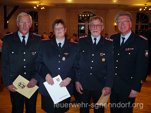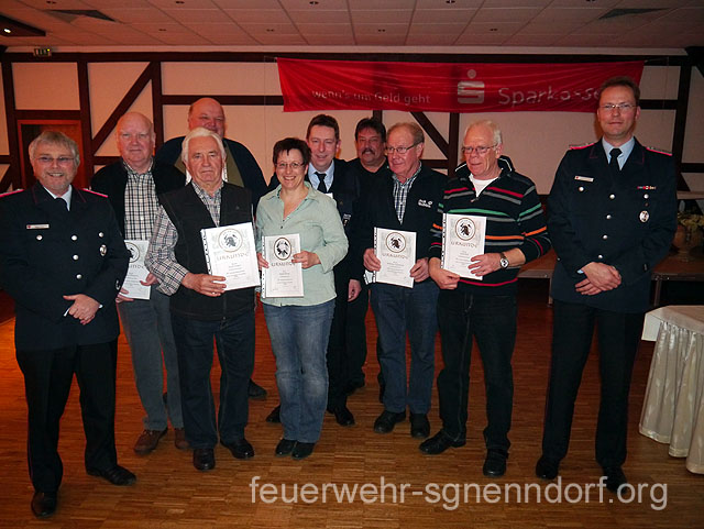Die Aktiven der Freiwilligen Feuerwehr Riehe haben Carsten Riechert während der Jahreshauptversammlung einstimmig zum neuen Ortsbrandmeister gewählt. Er folgt damit auf Jürgen Arend, der das Amt seit 2003 ausübte und mit dem Erreichen der gesetzlichen Altersgrenze sich nicht erneut zur Wahl stellen durfte. Riechert, ein Enkel des ersten Rieher Ortsbrandmeisters, war bislang Stellvertreter von Jürgen Arend. Die aktiven Mitglieder der Feuerwehr sprachen sich einstimmig für Andreas Renner als neuen stellvertretenden Ortsbrandmeister aus.Carsten Riechert übernimmt eine gut aufgestellte Wehr mit mehr als 205 Mitgliedern, davon 28 Aktiven. Ein besonderer Schwerpunkt liegt in Riehe seit jeher auf der Jugendarbeit. 17 Kinder sind derzeit in der Kinderfeuerwehr aktiv und 15 Jugendliche treffen sich regelmäßig zu den Diensten der Jugendfeuerwehr. Die Leiterin der Kinderfeuerwehr, Sarah Blume, berichtete von einem aktiven Jahr. Die Jungen und Mädchen lernten viel über die Feuerwehr und hatten bei verschiedenen anderen Aktionen viel Spaß. Sie nahmen am Winterwettbewerb der Nenndorfer Kinderfeuerwehren und den örtlichen Eimerspielen teil. Auch für 2014 gibt es schon wieder einen vollen Terminkalender. So soll die Feuerwehrtechnische Zentrale in Stadthagen besichtigt werden. Ein Ausflug zum Steinzeichen in Steinbergen ist ebenfalls geplant. Die Jugendfeuerwehr legt einen besonderen Wert auf die Zusammenarbeit mit den Aktiven. Verschiedene gemeinsame Aktionen, wie einer Einsatzübung oder einer Tagesfahrt nach Hamburg, sollten den Teamgeist stärken. Jugendfeuerwehrwart Raphael Drewnitzky berichtete ferner von diversen Aktionen der Rieher Jugendlichen. Insgesamt 82 Dienste weist das Dienstbuch aus. 17 Tage befanden sich die Jungen und Mädchen in Zeltlagern. Neben der feuerwehrtechnischen Ausbildung und allgemeiner Jugendarbeit, stand auf Wunsch der Jugendlichen auch Sport auf dem Plan. Erfolg hat es gebracht, da der B-Teil des Jugendfeuerwehrwettbewerbs – ein Staffellauf – nun regelmäßig unter zwei Minuten absolviert wird. Für 2014 planen die Jugendlichen wieder Aktionen zusammen mit den Aktiven und auf eigenen Wunsch den Besuch des ehemaligen Konzentrationslagers Bergen-Belsen. Die Zusammenarbeit mit den benachbarten Jugendfeuerwehren aus Waltringhausen und Helsinghausen-Kreuzriehe soll ebenfalls verstärkt werden. Der scheidende Ortsbrandmeister Jürgen Arend berichtete von den Einätzen und sonstigen Aktivitäten der Feuerwehr. Sieben Einsätze leisteten die ehrenamtlichen Feuerwehrleute in 2013: drei Brandeinsätze und vier Fehlalarme. Um die Einsätze absolvieren zu können, bildeten sich die Aktiven in vielen Bereichen fort. Eine solide theoretische und praktische Ausbildung ist erforderlich, um den Anforderungen gerecht zu werden. Aber auch für die Dorfgemeinschaft war die Feuerwehr wieder aktiv. Sie richtete Osterfeuer und Erntefest aus und war somit maßgeblich am kulturellen Leben in Riehe beteiligt. Der Tagesordnungspunkt „Ehrungen“ hatte einen recht familiären Charakter. Der Leiter des Brandschutzabschnitts Nord, Uwe Blume, zeichnete zunächst seine Tochter Sarah Blume mit dem Ehrenzeichen des Landes Niedersachsen für 25 Jahre aktiven Dienst aus. Es folgten Ehrungen des Landesfeuerwehrverbandes für langjährige Mitgliedschaft. Zunächst erhielt der Suthfelder Bürgermeister Horst Schlüter die Ehrung für 25 Jahre. Danach ging es wieder zur Familie Blume, als Uwe Blume seinen Patenonkel Herbert Blume für 60-jährige Mitgliedschaft auszeichnen durfte. Claus Bernstein erhielt vom Ortsbrandmeister einen weiteren Stern für seine Schulterklappen. Er trägt nun den Dienstgrad Erster Hauptfeuerwehrmann. Text und Fotos: Marco Thiele // 15.02.2014