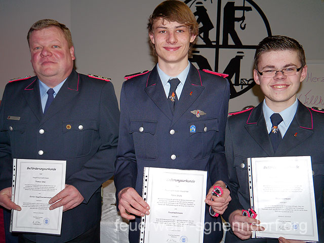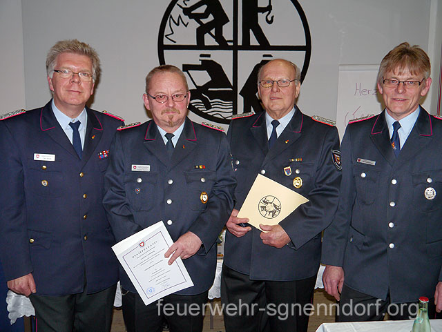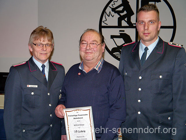 Der langjährige Ortsbrandmeister der Freiwilligen Feuerwehr Hohnhorst, Konrad Battermann, erhielt für seine sechs Jahrzehnte andauernde Mitgliedschaft das Ehrenzeichen des Niedersächsischen Landesfeuerwehrverbandes überreicht. Der Leiter des Brandschutzabschnitts Nord, Uwe Blume, verknüpfte die Ehrung mit einem Rückblick auf die Ereignisse des Jahres 1954, als der ADAC die "Gelben Engel" auf die Straßen schickte und Vico Torriani mit "Granada" in der Hitparade war. Ferner gab er einige Anekdoten zum Besten, die er zu seiner Zeit als Jugendfeuerwehrwart zusammen mit Battermann, damals ebenfalls Jugendfeuerwehrwart, erlebte.Neben Battermann ehrte Blume noch Joachim Tödteberg für 40-jährige aktive Mitgliedschaft mit dem Ehrenzeichen des Landes Niedersachsen. Wilfried Steege erhielt vom Ortsbrandmeister Heiko Wilkening eine Ehrung für 50-jährige Mitgliedschaft überreicht. Die Feuerwehr rückte im vergangenen Jahr zu neun Einsätzen, sechs Brandeinsätze und drei Hilfeleistungen aus. Da die Einsätze zumeist mit den Nachbarwehren aus Haste und Rehren – gemeinsam bilden sie den Löschzug Nord – gefahren werden, erfolgt auch ein Teil der Ausbildung gemeinsam. Verschiedene theoretische und praktische Dienste fanden dazu in 2013 statt. Ein Höhepunkt des letzten Jahres waren die Feierlichkeiten zum 80-jährigen Bestehen der Feuerwehr. Zu einem Freundschaftswettbewerb hatten die Hohnhorster Feuerwehrleute zahlreiche befreundete Wehren eingeladen. Am Festwochenende wurde auch offiziell die Kinderfeuerwehr, die "Hohnhorster Löschriesen", gegründet. Unter der Leitung von Yvonne Seifert treffen sich die 15 Kinder regelmäßig zu gemeinsamen Diensten. Hierbei lernen sie viel über die Feuerwehr und werden im Brandschutz unterwiesen. Allerdings stehen auch ganz viel Spiel und Spaß auf dem Programm. Als größten Erfolg verzeichneten die Kinder bei der Nenndorfer Winterolympiade. Auf Anhieb erreichten sie den ersten Platz und freuten sich riesig über den Erfolg. Heiko Wilkening nahm zum Abschluss der Versammlung noch einige Beförderungen vor. Felix Stute und Nico Wilkening beförderte er zu Feuerwehrmännern. Thomas Edler erhielt die Beförderung zum Ersten Hauptfeuerwehrmann ausgesprochen. Text und Fotos: Marco Thiele // 15.02.2014