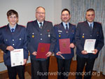 In diesem Jahr feiert die Freiwillige Feuerwehr Haste ihr 100-jähriges Bestehen. Dazu finden das ganze Jahr über verschiedene Veranstaltungen statt. Auch die Jahreshauptversammlung im Bürgerhaus stand natürlich ganz im Zeichen dieses besonderen Jubiläums. Ortsbrandmeister Klaus-Peter Wegener führte im nahezu voll besetzten Bürgerhaus durch die Jahreshauptversammlung. In seinem Jahresbericht listete er 15 Einsätze auf, zu denen die ehrenamtlichen Einsatzkräfte im vergangenen Jahr ausrückten. Neben einigen Kleinbränden waren dieses auch acht Hilfeleistungen, wie etwa voll gelaufene Keller oder überflutete Straßen nach Unwettern.Carsten Norden, stellvertretender Ortsbrandmeister, berichtete von den zahlreichen Diensten, bei denen sich die Feuerwehrleute das erforderliche praktische und theoretische Wissen für die Bewältigung der Einsätze aneignen. Themen wie Technische Hilfeleistung, Brandbekämpfung, Fahrzeugkunde und Erste Hilfe standen auf dem Dienstplan. Die 13 Atemschutzgeräteträger absolvierten zusätzliche Dienste, bei denen sie ihre körperliche Leistungsfähigkeit unter Beweis stellen mussten. Auch für Leistungswettbewerbe wurde geübt, wenn auch im abgelaufenen Jahr kein größerer Erfolg zu verzeichnen war. Die Jugendfeuerwehr hatte bei allen Aktionen viel Spaß. Dieses kam im Jahresbericht des stellvertretenden Jugendfeuerwehrwartes Carsten Groß besonders zur Geltung. Sei es die Teilnahme an Wettbewerben oder Ausflüge in den Heidepark oder zum Deutschen Jugendfeuerwehrtag in Stadthagen. Die Jungen und Mädchen waren stets mit Eifer und Freude dabei. Zusammen mit der Kinderfeuerwehr schmückten die Jugendlichen einen Erntewagen und nahmen anschließend am Festumzug teil. Für das laufende Jahr steht natürlich die Unterstützung der Jubiläumsfeierlichkeiten auf dem Plan. Aber auch auf das Kreiszeltlager, das im Sommer in Stadthagen stattfindet, freuen sich die Jugendfeuerwehrleute bereits. Die „Haster Feuerschlümpfe“, geleitet von Jennifer Wüstenfeld, standen den Aktivitäten der anderen Abteilungen in nichts nach. Die Kinder zwischen sechs und zehn Jahren verkauften Kinderpunsch beim Osterfeuer, nahmen an „Orientierungsmärschen“ in Hattendorf und Möllenbeck teil, verbrachten einen Waldtag und hatten bei allen Aktionen viel Freude. Natürlich lernten die Kinder auch viel über die Feuerwehr im Allgemeinen und über die eigene Feuerwehr im Besonderen. In 2014 werden die Feuerschlümpfe natürlich auch die Feierlichkeiten unterstützen und sich präsentieren. Zum Abschluss verabschiedete sich Jennifer Wüstenfeld als Leiterin der Kinderfeuerwehr. Aus beruflichen Gründen kann sie ihr Amt nicht mehr fortführen. Als Nachfolgerin steht Lisa Wegener bereit. Seit mehreren Jahren fungiert sie bereits als Stellvertreterin und ist somit bestens mit der Arbeit mit den Kindern vertraut. Eine weitere Personalie passierte die Versammlung ohne Probleme. Die Amtszeit des Ortsbrandmeisters Klaus-Peter Wegener endet im Sommer. Aus Altersgründen stand er für eine Wiederwahl nicht zu Verfügung. Die Aktiven wählten daher bereits im Vorfeld einen neuen Ortsbrandmeister. Der bisherige Stellvertreter Carsten Norden übernimmt ab dem Sommer die Leitung der Feuerwehr Haste. Neuer Stellvertreter wird Olav Sievert. Einen besonderen Umfang nahmen die Grußworte der Gäste aus Feuerwehr und Politik ein. Heinrich Holstein, Ehrenortsbrandmeister und engagierter Heimatforscher, berichtete, dass man vor 40 Jahren noch annahm, die Feuerwehr sein in 1933 gegründet worden. Unterlagen, die auf einem Heuboden gefunden wurden, sagten dann etwas anderes aus. Als Geschenkt für die Feuerwehr überreichte Holstein Hinweisschilder, die an den Ortseingängen an Stelen befestig werden sollen und die auf das Jubiläum hinweisen. Auch Sigmar Sandmann, Bürgermeister der Gemeinde Haste, hatte Geschenke dabei. Die Gemeinde übernahm die Druckkosten für 250 Exemplare der Festschrift. Sandmann hob in seinen Grußworten die stets gute und konstruktive Zusammenarbeit mit der Feuerwehr hervor. Die Unterstützung für die Gemeinde, wie beispielsweise beim Schreddertag im vergangenen Jahr, erfolgte immer sachkundig und umsichtig. Bernd Reese, Samtgemeindebürgermeister, dankte den Feuerwehrleuten für ihr Engagement. Ohne diesen ehrenamtlichen Einsatz wäre es um die Finanzen der Samtgemeinde noch schlechter bestellt. Er stellte den Anwesenden Bürgern die Eckpunkte der aktuellen Lage dar. Trotz höherer Einnahmen aus der Gewerbesteuer liegt die Verschuldung bei elf Millionen Euro. Durch die geplanten Investitionen, etwa dem Feuerwehrhaus in Bad Nenndorf, steigt die Verschuldung in den nächsten Jahren noch weiter an. Ganz aktuell überbrachte er die Nachricht, dass sich der Feuerwehrausschuss dazu entschieden hat, für die Ortsfeuerwehr Bad Nenndorf wieder eine Drehleiter zu beschaffen. An den scheidenden Ortsbrandmeister ging der Dank für eine vertrauensvolle Zusammenarbeit in den vergangenen Jahren. Ehrungen und Beförderungen durften natürlich auch nicht fehlen. Aus den Reihen der fördernden Mitglieder ehrte Wegener Lothar Oelkers, Klaus Schmidt und Peter Steuerberg für 40-jährige Mitgliedschaft. Uwe Blume, Leiter des Brandschutzabschnitts Nord, zeichnete Heinrich Holstein und Werner Engelking für 60-jährige Mitgliedschaft mit dem Ehrenzeichen des Landesfeuerwehrverbandes aus. Zum Feuerwehrmann beförderte der Ortsbrandmeister Pascal Kremling. Hauptfeuerwehrmann ist nun Simon Brandes. Durch den Gemeindebrandmeister Friedhelm Möller erhielt Tobias Floß die Beförderung zum Löschmeister. Ulrich Nürnberg bekam einen weiteren Stern für seine Schulterklappen überreicht und ist nun Oberlöschmeister. Zum Abschluss der Versammlung überreichte die Feuerwehr ein Geschenk an die Gemeinde. Der Bürgermeister war sichtlich verblüfft, als er von Klaus-Peter Wegener eine Uhr, allerdings ohne Ziffernblatt überreicht bekam. Die Verblüffung legte sich recht schnell, als an der Stirnseite des