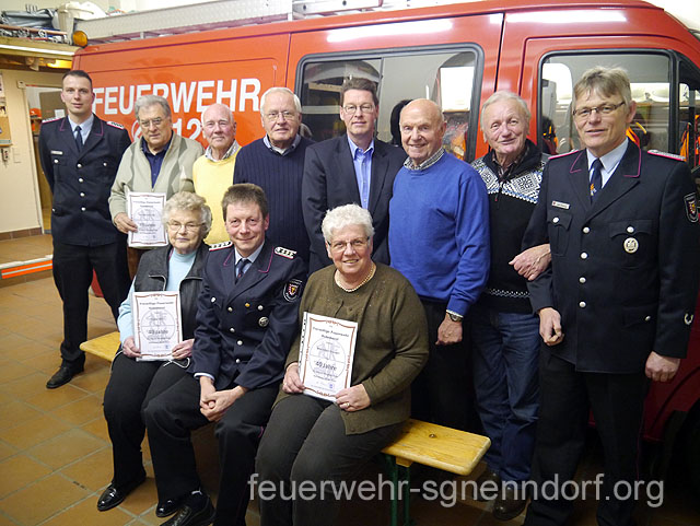 Seit 1990 nimmt Jürgen Dohmeyer das Amt des Gerätewartes in der Feuerwehr Hohnhorst wahr. Er kümmert sich um die Instandhaltung des Fahrzeuges und der Geräte, fühlt sich aber auch für die Außenanlagen verantwortlich. Ortsbrandmeister Heiko Wilkening lobte Dohmeyer als engagierten und gewissenhaften Gerätewart. Das Feuerwehrfahrzeug und die technischen Geräte seien immer im besten Zustand. Zudem achte er immer auf die Ordnung im Feuerwehrhaus und im Außenbereich. So mancher Feuerwehrkamerad, der etwas hat liegen lassen, wurde von Dohmeyer angesprochen und freundlich ermahnt. Als Dank und Anerkennung für sein jahrzehntelanges Engagement erhielt er ein Präsent und eine Urkunde überreicht.Die Feuerwehr musste das Fahrzeug im abgelaufenen Jahr bei 13 Einsätzen aus der Halle fahren. Sieben Brandeinsätze und sechs Hilfeleistungen gab es für die Einsatzkräfte zu bewältigen. Kleinbrände, durch Äste blockierte Fahrbahnen, eine Menschenrettung, einen Verkehrsunfall und einen Ölschaden listet die Jahresstatistik auf. Die Einsätze wurden in der Regel zusammen mit den Feuerwehren aus Haste und Rehren absolviert. Zusammen bilden die drei Feuerwehren den Löschzug Nord. Gruppenführer Jens Wehrhahn berichtet von den Ausbildungsdiensten, die zusammen mit den Nachbarwehren durchgeführt wurden. Ein besonderer Schwerpunkt lag hierbei auf dem praktischen Training. Einsatzübungen und der Umgang mit Spezialgeräten, wie hydraulischen Rettungsgeräten oder Wärmebildkamera, sollte die Zusammenarbeit fördern. Durch diese gemeinsamen Übungen können sich die Feuerwehren ergänzen, was besonders tagsüber von Vorteil ist, wenn viele Feuerwehrleute außerhalb der Samtgemeinde ihrer Arbeit nachgehen. Neben Einsätzen und Ausbildung war die Feuerwehr auch für die Dorfgemeinschaft aktiv. Sie unterstützte den Laternenumzug, den Weihnachtsmarkt und das Dorfgemeinschaftsfest. 18 Kinder nehmen derzeit an den Diensten der von Yvonne Seifert geleiteten Kinderfeuerwehr teil. Die „Löschriesen“ stehen ihren großen Vorbildern in nichts nach und waren ebenfalls sehr aktiv. Sie nahmen an Wettbewerben teil, spielten Minigolf, begaben sich auf eine Radtour und bastelten Laternen für den Laternenumzug. Neben viel Spiel und Spaß hat die Brandschutzerziehung einen großen Stellenwert. Die Kinder lernen, richtig mit Feuer umzugehen und sich im Ernstfall richtig zu verhalten. Das Absetzen eines Notrufs gehört auch mit zu den Dingen, die die Jungen und Mädchen in der Kinderfeuerwehr lernen. Um einmal zu erfahren, wo der Notruf entgegen genommen wird, besichtigte die Kinderfeuerwehr die Integrierte Rettungsleitstelle Schaumburg/Nienburg in Stadthagen. Anschaulich erläuterten die Mitarbeiter was geschieht, wenn die 112 angerufen wird. Und wie es der Zufall wollte, gab es zum Zeitpunkt der Besichtigung einen Alarm für die Feuerwehr Hohnhorst. In 2015 wechseln sechs Kinder in die Jugendfeuerwehr, die damit nach einigen Jahren der Inaktivität wieder neu belebt wird. Jugendfeuerwehrwart ist Michael Winkler, vertreten wird er durch Gunnar Töthe. Die Dienste finden zunächst in Kooperation mit der Jugendfeuerwehr Haste statt. Dank der guten Jugendarbeit in der Kinderfeuerwehr wird die Jugendfeuerwehr in den nächsten Jahren sicherlich noch mehr Zuwachs erhalten. Für 40-jährige fördernde Mitgliedschaft ehrte der Ortsbrandmeister Arnold Salewski, Karl-Heinz Most, Hans Meiser, Michael Balke, Willi Rohrssen, Erwin Sandmann, Marie Wille und Brunhilde Grunert jeweils mit einer Urkunde und einem Präsent. Auf der Liste der zu ehrenden standen noch weitere 25 Namen von Hohnhorstern, die ebenfalls vor 40 Jahren der Feuerwehr als Förderer beitraten. Zu verdanken ist dieses einer Werbeaktion, die in den Jahren 1975 und 1976 zu einem wahren Mitgliederansturm führte. Etwa 100 Hohnhorster Bürger traten der Feuerwehr als Förderer bei. Somit ist abzusehen, dass auch 2016 zahlreiche Ehrungen auf der Tagesordnung stehen werden. Text und Fotos: Marco Thiele