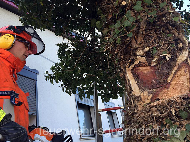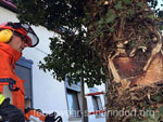 Orkan "Niklas" sorgte auch in der Samtgemeinde Nenndorf für mehrere Einsätze. Besonders die Feuerwehr Bad Nenndorf war gefordert, sie musste insgesamt zu acht sturmbedingten Einsätzen ausrücken. ![]() Bei weiteren Einsätzen im Stadtgebiet von Bad Nenndorf beseitigten die ehrenamtlichen Feuerwehrleute weitere Bäume, die zum Teil kurz davor standen, auf Häuser zu stürzen. Die Feuerwehr Bad Nenndorf unterstützte mit der Drehleiter zudem die Feuerwehr Lauenau. An einem Werbeturm hatte sich ein großes Plakat gelöst, das abzureißen und auf die Autobahn zu wehen drohte. In Waltringhausen bestand ebenfalls Gefahr, dass ein Baum auf ein Gebäude stürzt. Die Feuerwehren des Löschzugs Ost sicherten den Baum und fällten ihn anschließend. Der Löschzug Nord war auch im Einsatz. In Haste musste ein Baum gefällt werden, der umzustürzen drohte. In der Nacht zum Mittwoch rückten die Einsatzkräfte erneut nach Haste aus, da auf der B442 in Nähe der Bahnunterführung ein Baum die Fahrbahn blockierte. Text: Marco Thiele | Fotos: Feuerwehren Bad Nenndorf (5-9), Hohnhorst (1-2), Waltringhausen (3-4)