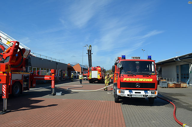 Die Feuerwehr Bad Nenndorf unterstützte die Feuerwehren der Stadt Stadthagen bei einem Großbrand in einer Werkstatt und Schule für behinderte Menschen. Mit der Drehleiter und weiteren Fahrzeugen rückte die Feuerwehr in die etwa 15 km entfernte Kreisstadt aus. ![]() Umgehend wurde seitens des Einsatzleiters das Alarmstichwort auf B3 (Großbrand) erhöht. Ein weiterer Löschzug aus Bad Nenndorf sowie der Gerätewagen Atem-und Strahlenschutz der Kreisfeuerwehr Schaumburg waren an der Einsatzstelle erforderlich. 350 Personen wurden aus dem Gebäude evakuiert. Eine Person, welche anfangs als vermisst gemeldet wurde, war wie sich im Laufe des Einsatzes herausstellte, nicht auf dem Gelände, so dass niemand an diesem Vormittag verletzt wurde. Da anfangs von einem Massenanfall von Verletzten/Betroffenen auszugehen war, wurde durch die Rettungsleitstelle ebenfalls die Örtliche Einsatzleitung Rettungsdienst mit zwei leitenden Notärzten und sechs organisatorischen Leitern, der hauptberufliche Rettungsdienst mit einem Notarzteinsatzfahrzeug, sechs Rettungswagen sowie einem Krankentransportwagen zur Einsatzstelle alarmiert. Die Feuerwehr hatte das Feuer schnell unter Kontrolle und verhinderte somit eine Brandausbreitung. Das Feuer befand sich in einer Zwischendecke der Werkstatt. Zum jetzigen Zeitpunkt kann jedoch keine Angabe zur Brandursache gemacht werden. Die Polizei hat die Ermittlungen aufgenommen. Im Einsatz waren seitens der Feuerwehr 10 Trupps unter PA, drei C-Rohre, zwei B-Rohre, eine Rettungssäge, Wärmebildkamera und Hochdrucklüfter eingesetzt. Ferner kam zum ersten Mal die Gruppe Absturzsicherung der Stadt Stadthagen zum Einsatz, welche die Arbeiten im Dachbereich sicherte. Diese Gruppe setzt sich aus Mitgliedern der Ortsfeuerwehren der Stadt Stadthagen zusammen. Seitens der Freiwilligen Feuerwehren waren etwa 80 Einsatzkräfte der Feuerwehren Stadthagen, Enzen, Wendthagen-Ehlen, Bad Nenndorf, der GW-AS der Umweltschutzeinheit der Kreisfeuerwehr sowie das Team Presse im Einsatz. Hinzu kommen noch die Einsatzkräfte der Örtlichen Einsatzleitung, der Polizei und des DRK Rettungsdienstes. Text und Fotos: Team Presse Kreisfeuerwehr, Ingo Beyer