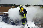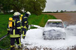 Zu einem brennenden Fahrzeug alarmierte die Integrierte Regionalleitstelle Nienburg/Schaumburg den Löschzug Nord in die Haster Feldmark. An der Einsatzstelle fanden die Feuerwehrleute einen Pkw im Vollbrand vor. ![]() Sofort nach der Ankunft begannen die Einsatzkräfte aus Haste, Hohnhorst und Rehren mit der Brandbekämpfung. Dazu nahm ein Trupp unter Atemschutz ein Schaumrohr vor. Das Wasser kam aus dem Tank des Haster Tanklöschfahrzeuges. Nach kurzer Zeit war das Feuer unter Kontrolle. Die Nachlöscharbeiten waren ebenfalls schnell erledigt. Im Einsatz waren etwa 20 Feuerwehrleute mit vier Fahrzeugen. Text: Marco Thiele | Fotos: Enrico Lobenstein, Ulrike Stanke