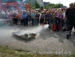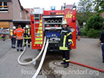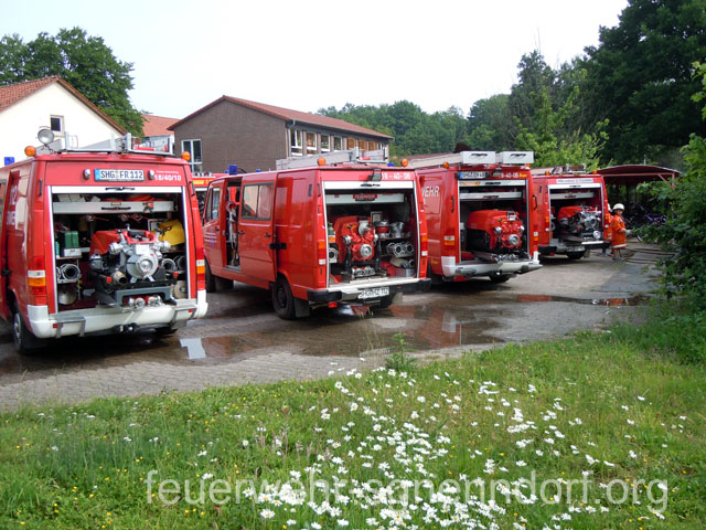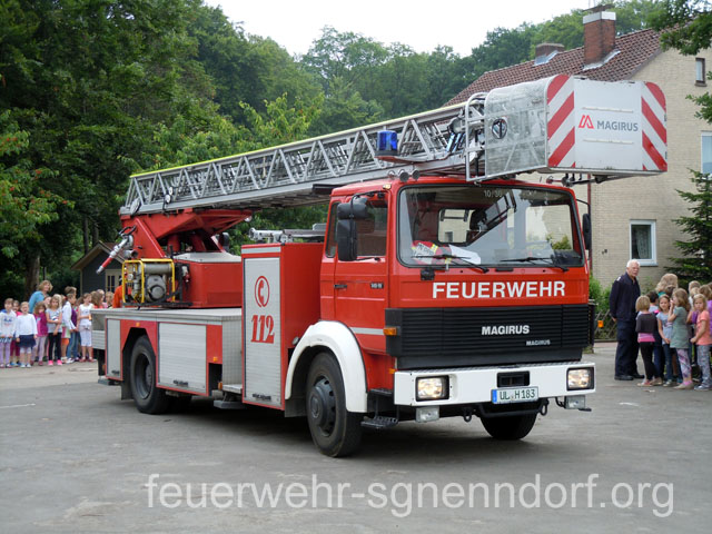 Bereits zum zweiten Mal präsentierten sich die Freiwilligen Feuerwehren der Samtgemeinde Nenndorf im Rahmen eines Projekttages den Schülerinnen und Schülern der Grundschule in Haste. Eingeleitet wurde die Aktion von der Evakuierung der Schule. Diese muss in regelmäßigen Abständen geübt werden, damit sich Schüler und Lehrer im Ernstfall richtig verhalten. Nachdem alle Schüler auf dem Sammelplatz in der Nähe der Schule versammelt waren, fuhren die Feuerwehren auf den Schulhof und begannen mit der Präsentation.Für alle Schüler wurde zunächst die Rettung einer Person aus dem ersten Obergeschoss demonstriert. Dazu brachten die Feuerwehrleute die Drehleiter aus Bad Nenndorf in Stellung. Das "Opfer" stieg dann vom Fenster in den Rettungskorb und fuhr darin zurück auf den Boden. Gleichzeitig stellten weitere Feuerwehrleute die Wasserversorgung her und ein Trupp unter Atemschutz demonstrierte, wie er zur Brandbekämpfung in die Schule vorgeht. Nach Abschluss der Präsentation verteilten sich die Kinder auf einzelne Stationen, an denen sie weitere Informationen über die Feuerwehren erhielten und selber aktiv werden durften. So bekamen die Kinder vorgeführt, wie man eine Person aus einem Obergeschoss retten kann, wenn keine Drehleiter verfügbar ist. Mit dem Sprungretter, vergleichbar mit einem Luftkissen, ist der Sprung aus dem Fenster kein Risiko mehr. Ein Dummy diente hier als Versuchsobjekt, der mehrfach aus dem Korb der Drehleiter flog. An einem weiteren Stand wurde die Handhabung von Feuerlöschern gezeigt. Die Kinder hatten hier die Möglichkeit, mit Wasser gefüllten Feuerlöschern ein kleines Feuer zu löschen. Wenn Feuerlöscher nicht mehr ausreichen, kommen andere Geräte zum Einsatz. Welche dieses sind und welche unterschiedlichen Wirkungen diese haben, sahen die Schüler an einem weiteren Stand. Hier wurde der Einsatz verschiedener Strahlrohre und einem Hydroschild demonstriert. Mit Kübelspritzen versuchten sich die Zuschauer an einer Spritzwand. Hier galt es gut zu zielen, um in einem brennenden Haus - natürlich nur ein Model - ein Feuer zu löschen. Auf dem Weg von Station zu Station kamen die Schüler immer wieder an verschiedenen Feuerwehrfahrzeugen vorbei, die intensiv in Augenschein genommen werden konnten. Ebenfalls beteiligt war das Deutsche Rote Kreuz, das ebenfalls anschaulich seine Arbeit demonstrierte. So viel Spaß die Kinder und auch die Feuerwehrleute bei der Aktion auch haben. Der Hintergrund ist durchaus ein ernster. Noch sind die Feuerwehren mit einer ausreichenden Personaldecke ausgestattet. Doch die demographische Entwicklung macht auch vor den ehrenamtlichen Brandschützern nicht halt. In Zukunft ist nach Angaben des Niedersächsischen Innenministeriums mit einem Rückgang der aktiven Einsatzkräfte zu rechnen. Eine intensive Jugendarbeit ist eine der Maßnahmen, die hier gegensteuern soll. In der Samtgemeinde Nenndorf gibt es derzeit zehn Jugendfeuerwehren und acht Kinderfeuerwehren. Dieser Projekttag soll bei den Schülern das Interesse für die Kinder- und Jugendfeuerwehren wecken. Jedes Kind bekam als Gedächtnisstütze dazu einen Flyer überreicht. Neue Mitglieder, natürlich auch in den Einsatzabteilungen, sind herzlich willkommen. Text: Marco Thiele | Fotos: Rolf Thiele