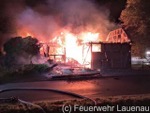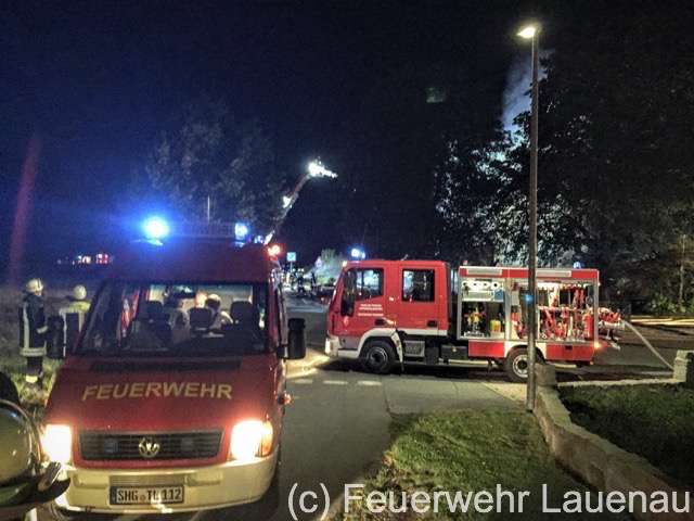 In Feggendorf - Samtgemeinde Rodenberg - brannte ein historischer Bauernhof bis auf die Grundmauern nieder. Als die Feuerwehren an dem teilweise aus dem 16. Jahrhundert stammenden Gebäude eintrafen, stand es bereits in Vollbrand. ![]() Im Gebäude gelagertes Stroh und die alte Bausubstanz des seit Jahren nicht mehr bewohnten Gebäudes sorgten für eine rasche Brandausbreitung. Die Maßnahmen der Feuerwehr konzentrierten sich daher darauf, benachbarte Gebäude vor dem Funkenflug zu schützen. Die Nenndorfer Feuerwehrleute rückten mit mehreren Fahrzeugen zum Brandobjekt aus. Über den Monitor im Korb der Drehleiter löschten die Feuerwehrleute die Flammen gezielt von oben. Da die Wasserversorgung in dem am Hang des Deisters liegenden Feggendorf für solche Großbrände nicht ausreicht, verlegten die Feuerwehren eine mehrere Hundert Meter lange Schlauchleitung aus Lauenau. Mit dieser konnte der Wasserbedarf an der Einsatzstelle schließlich sichergestellt werden. Der Einsatz endete für die Wehren aus Feggendorf und Lauenau erst mehr als 12 Stunden nach der Alarmierung. Weiterhin waren die Feuerwehren Pohle, Altenhagen II, Messenkamp, Apelern und Rodenberg im Einsatz. Insgesamt beteiligten sich mehr als 160 Einsatzkräfte an den Löscharbeiten. Text: Marco Thiele | Fotos: Feuerwehr Lauenau