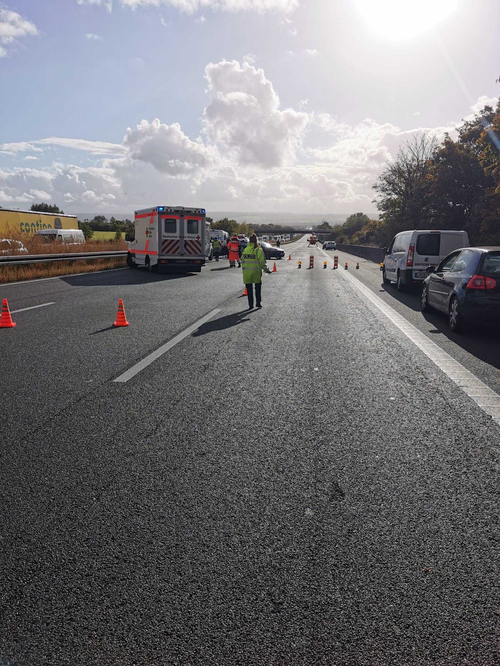 Die Fahrzeuge kollidierten auf dem linken Fahrbahnen miteinander. Über das Notrufsystem